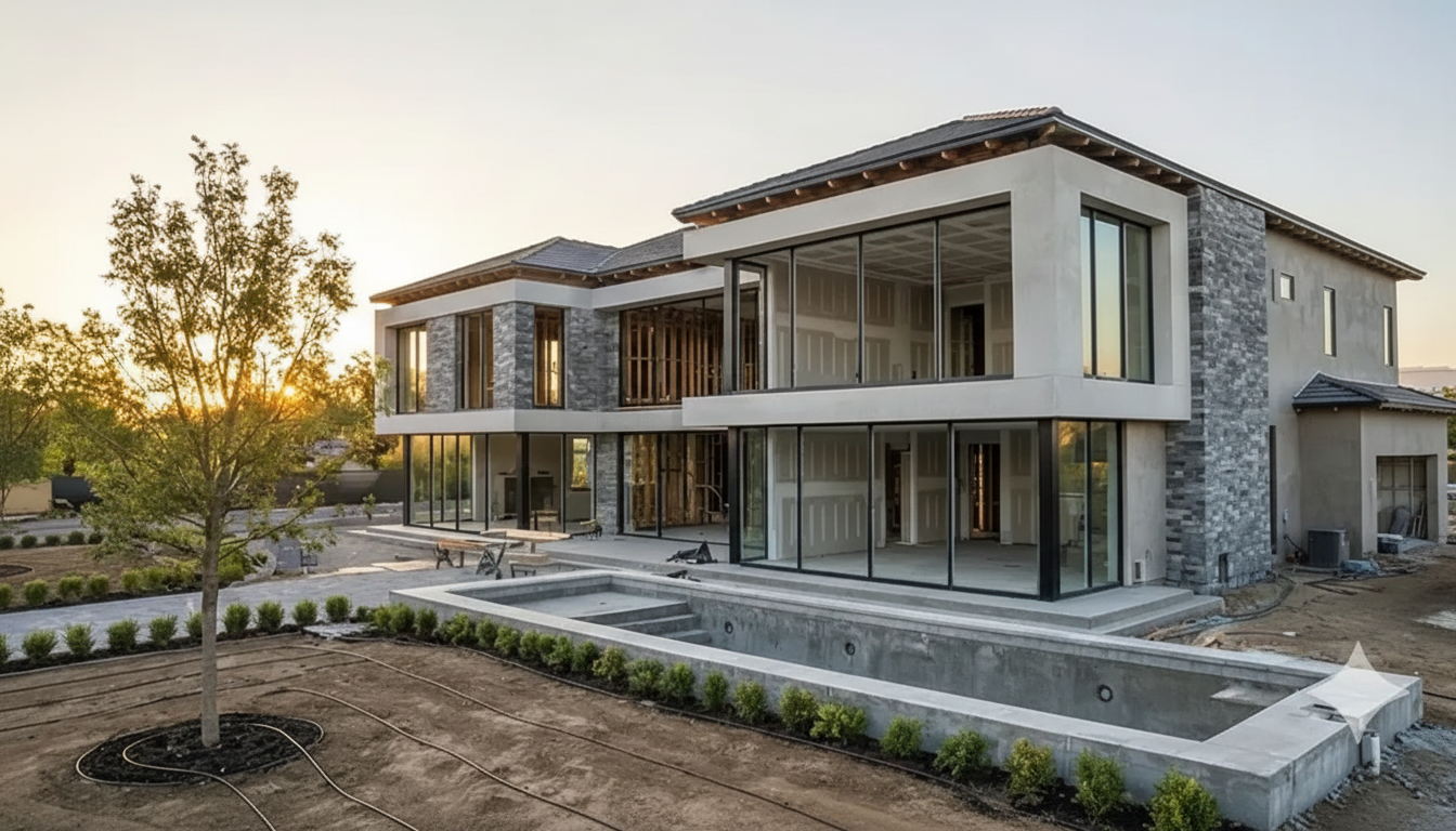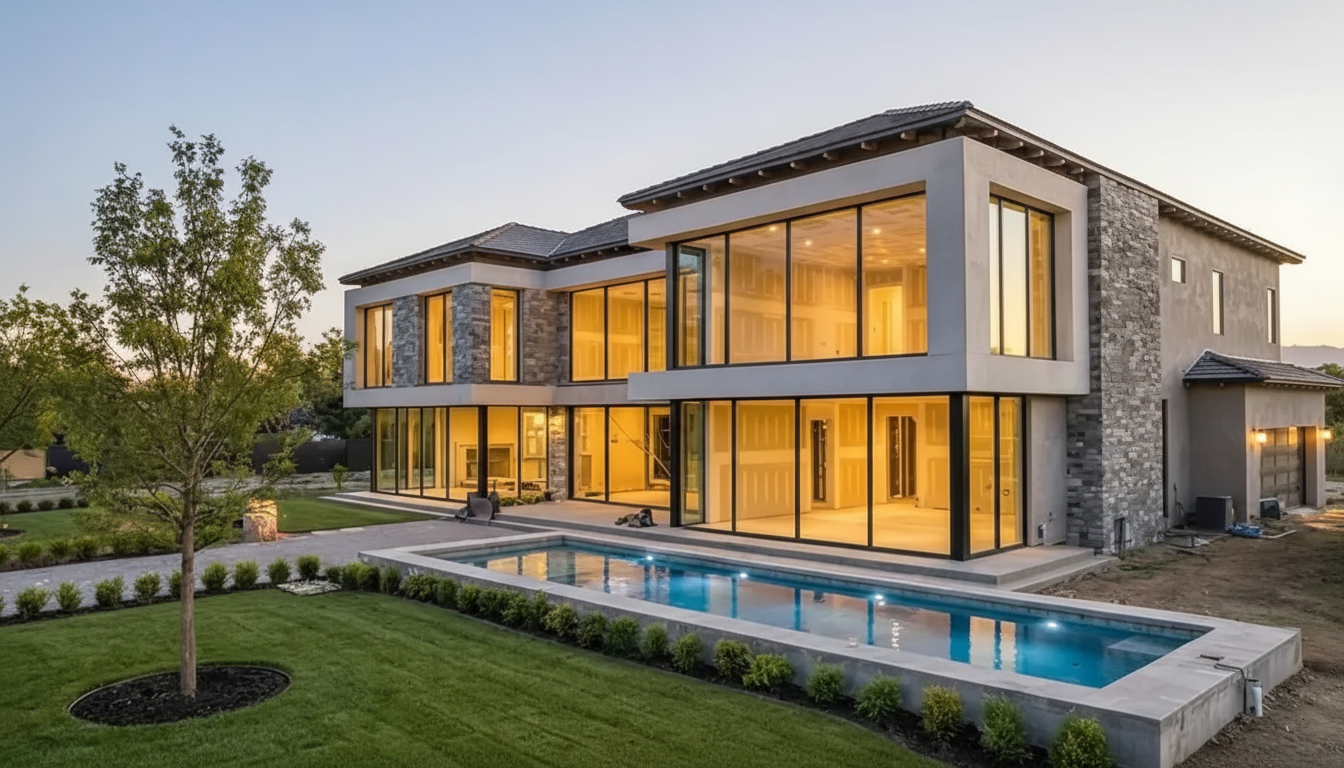 İki katlı olarak tasarlanan villa, geniş cam yüzeyleri sayesinde gün boyu doğal ışıkla doluyor. İç ve dış mekân arasındaki sınırlar neredeyse tamamen ortadan kalkarken, ferahlık hissi her alanda kendini hissettiriyor. Modern cephe tasarımı, doğal taş detaylar ve sade renk paletiyle zamansız bir mimari anlayış benimsendi.